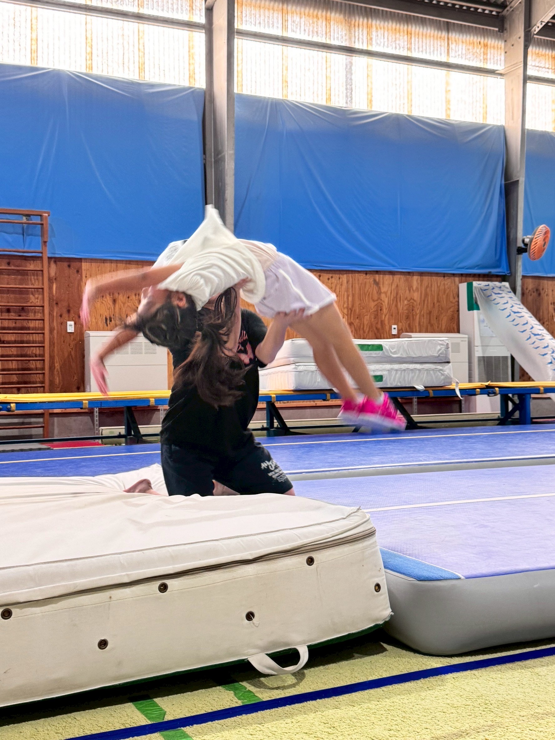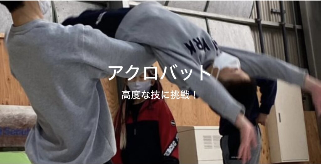 バク転・前宙をはじめたくさんの高度な技にどんどんチャレンジしていくクラスです。