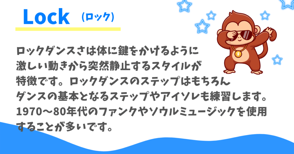 おさるダンス教室は初心者が安心してスタートできる教室です。ジャンルによって使用する音楽や振付に特徴があります。