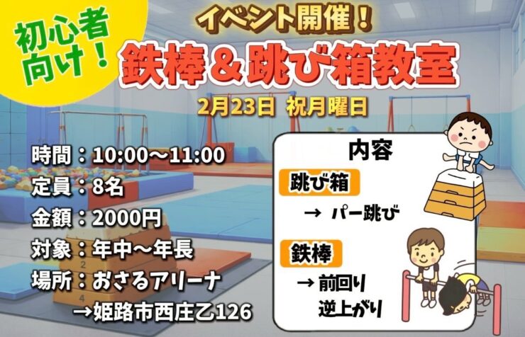 【姫路市】年中・年長向け鉄棒&跳び箱教室|1日イベント開...