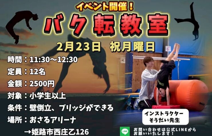 【姫路市】小学生向けバク転教室|1日イベント開催