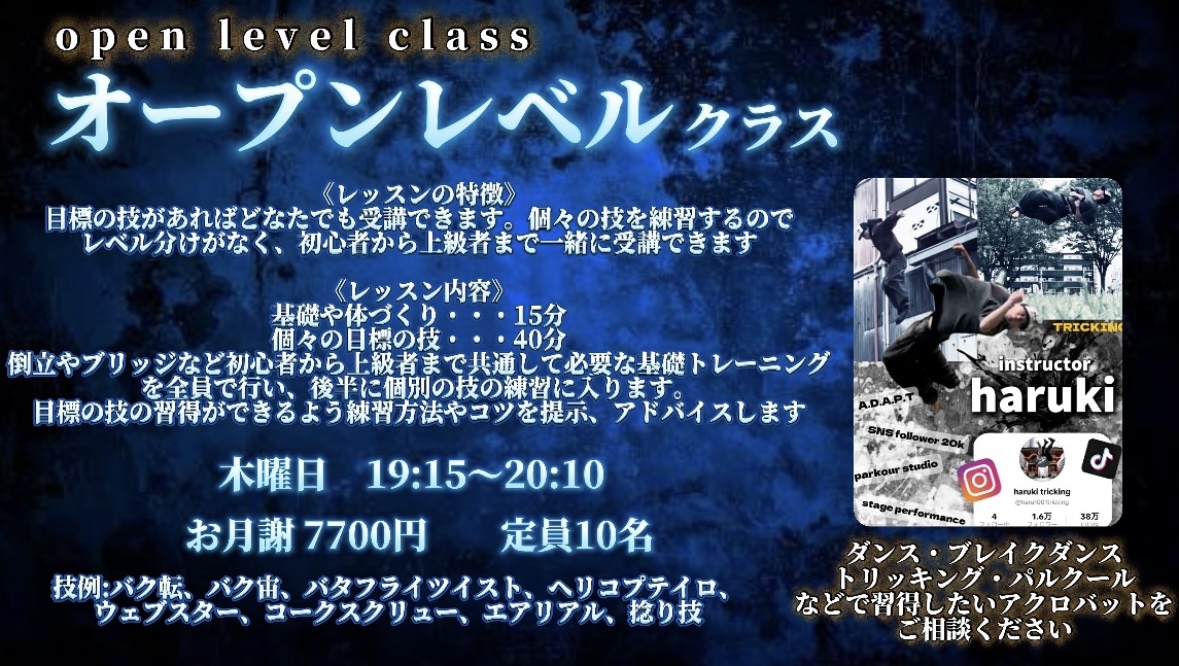 アクロバットのオープンレベルクラス新設のお知らせです🤸