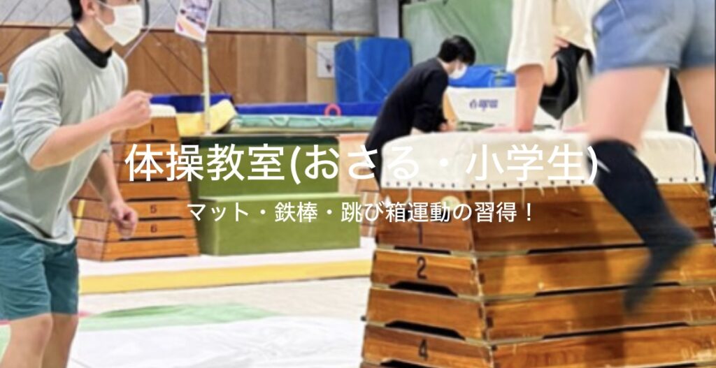 小学生の体育で行うマット・鉄棒・跳び箱運動の習得を目指すクラスです。